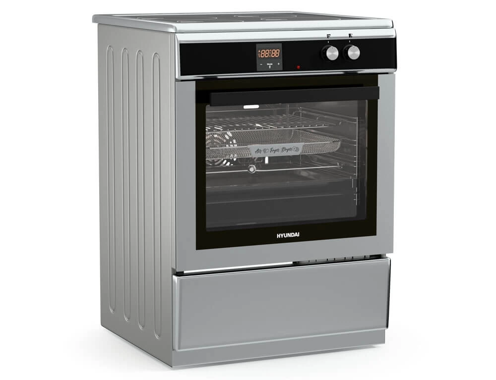 Κουζίνα Hyundai HCIN23-7261I/XT με πολυλειτουργικό φούρνο, επαγωγικές εστίες, χωρητικότητα φούρνου 69L, 9 λειτουργίες ψησίματος, μηχανισμό σούβλας και ενεργειακή κλάση Α
