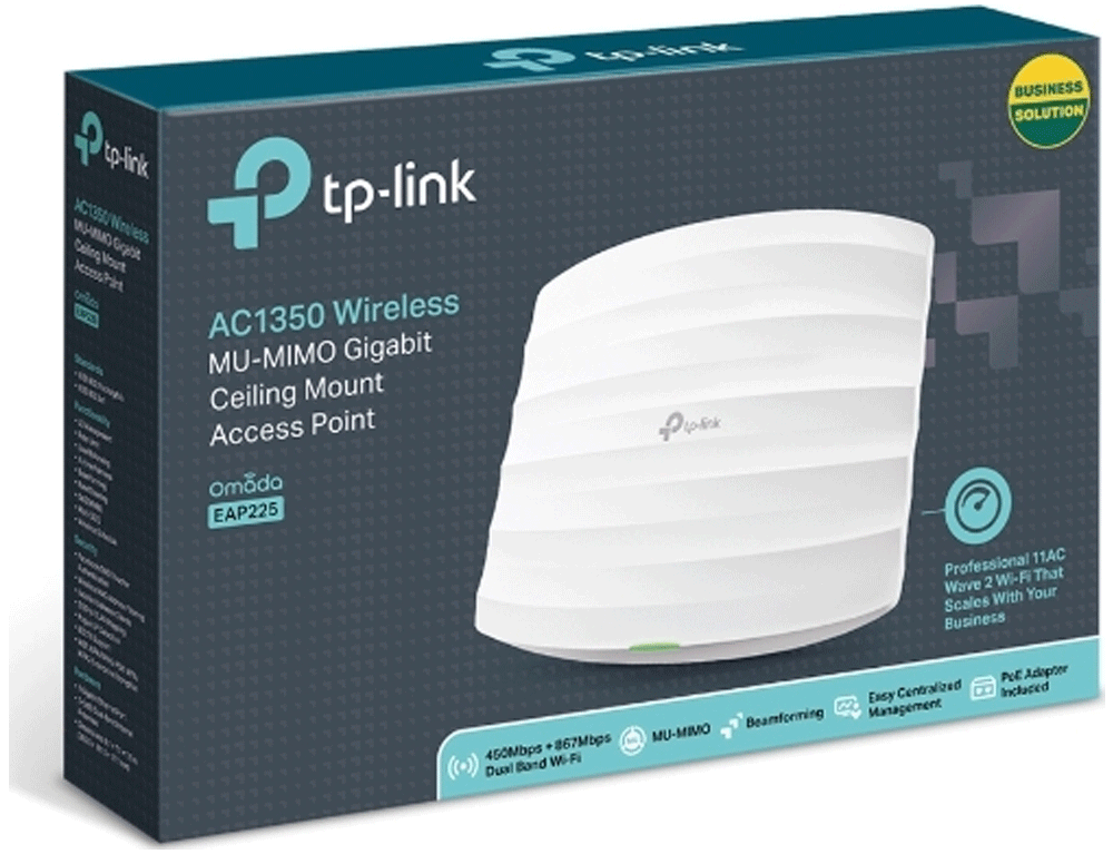 Access Point TP-Link EAP225 (v3) - Wi‑Fi 5 - Dual Band (2.4 GHz & 5 GHz) - 1300 Mbps - Εσωτερική τοποθέτηση
