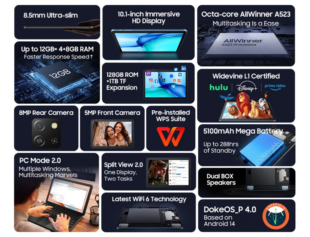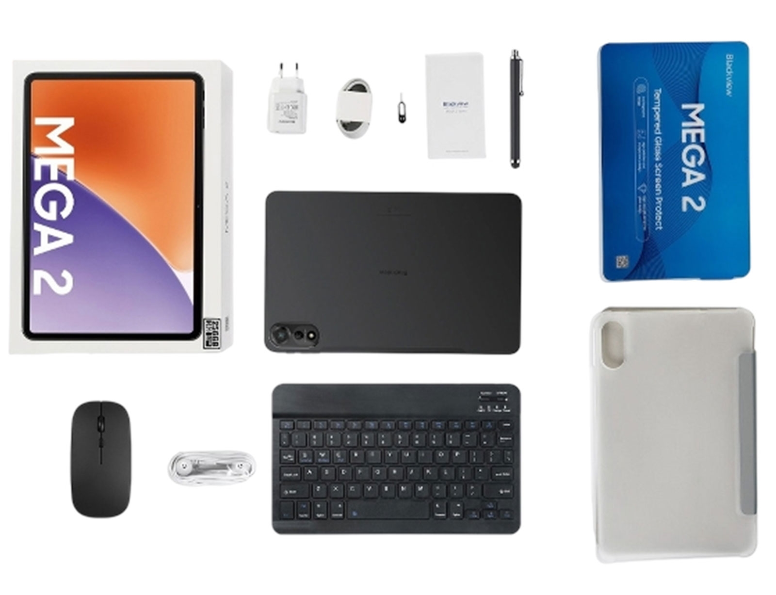 SET Tablet 12'' BlackView MEGA 2 (12GB/256GB) Wi-Fi & 4G - Grey, Με Πληκτρολόγιο, Ποντίκι, Θήκη, Ακουστικά, Στυλό και Προστατευτική Ταινία Οθόνης