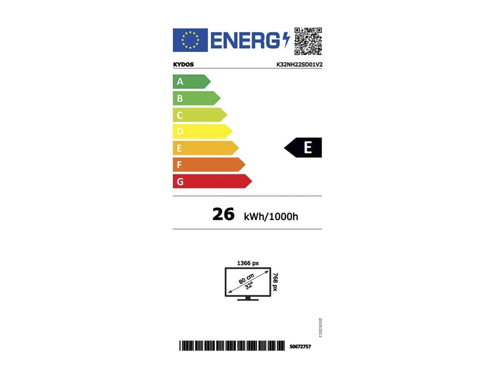 TV 32'' Kydos Basic (K32NH22SD01V3) - Ανάλυση HD Ready (1366 x 768) - DVB-T/T2/C/S/S2 - 2x HDMI, USB