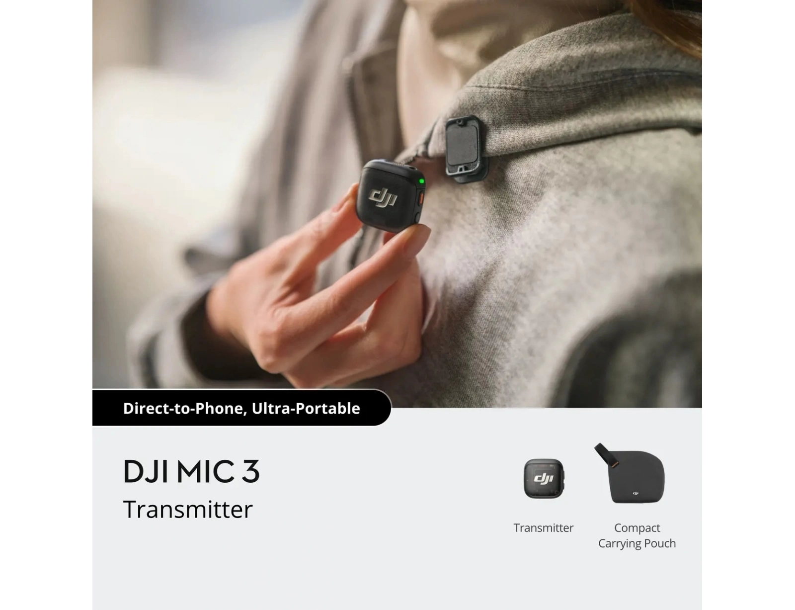 Ελαφρύ και συμπαγές, το DJI Mic 3 υποστηρίζει μαγνητική και κλιπ-on χρήση για ευέλικτη εφαρμογή. Η θήκη φόρτισης διατηρεί τους πομπούς, τον δέκτη και τα αξεσουάρ μαζί για εύκολη μεταφορά και άμεση εγκατάσταση.