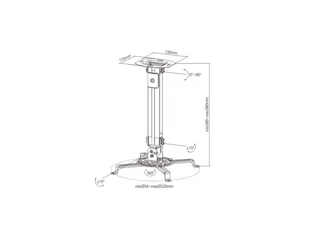 Βάση Projector Οροφής Brateck PRB-18S - 360° Περιστροφή - Μέγιστο Φορτίο 15kg - Ασημί - Λευκό