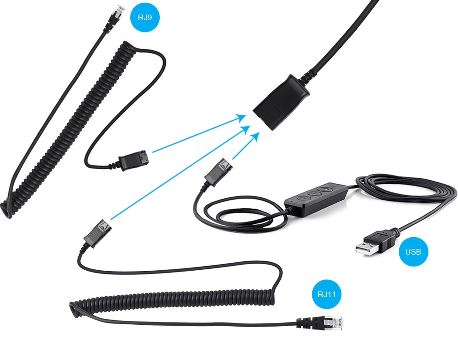 1 USB καλώδιο 1.6 μέτρων, 1 RJ9 καλώδιο 2.0 μέτρων (ξεδιπλωμένο) ,1 RJ11 καλώδιο 2.0 μέτρων (ξεδιπλωμένο)