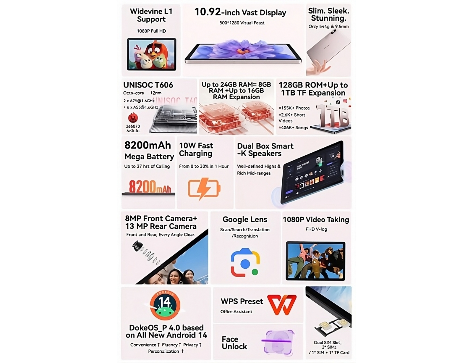 Tablet 10.92'' BlackView Tab 90 8-core (8GB/128GB) WiFi & 4G- Ink Grey