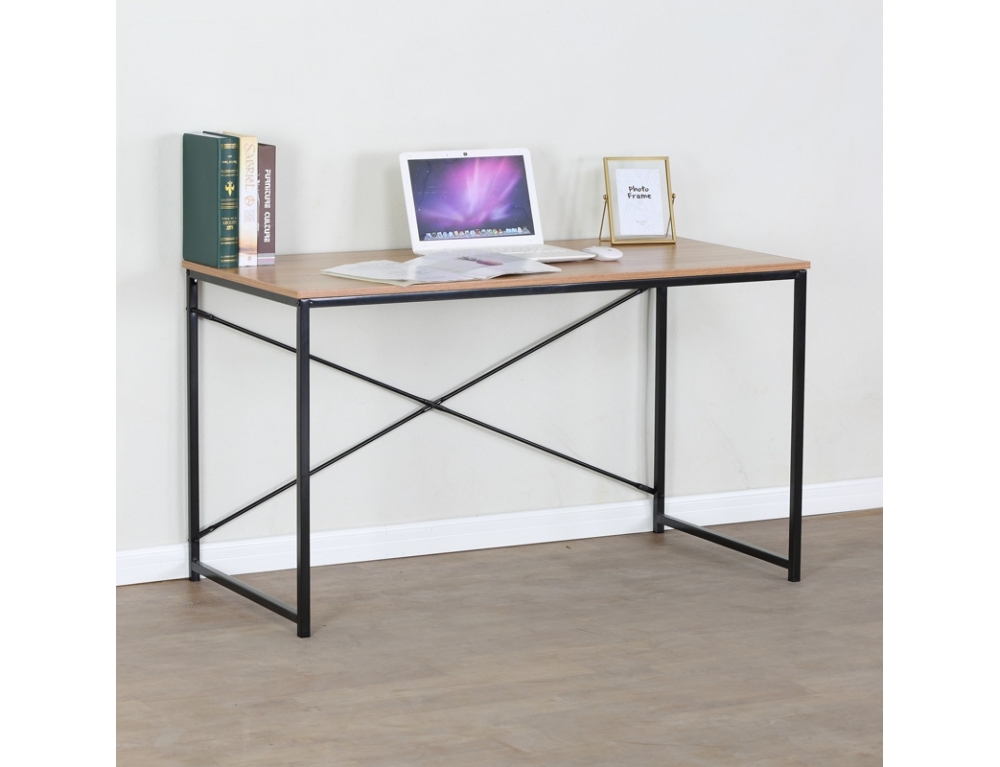 Γραφείο εργασίας Bailon pakoworld σε oak απόχρωση με μαύρο μέταλλο 120x60x70εκ