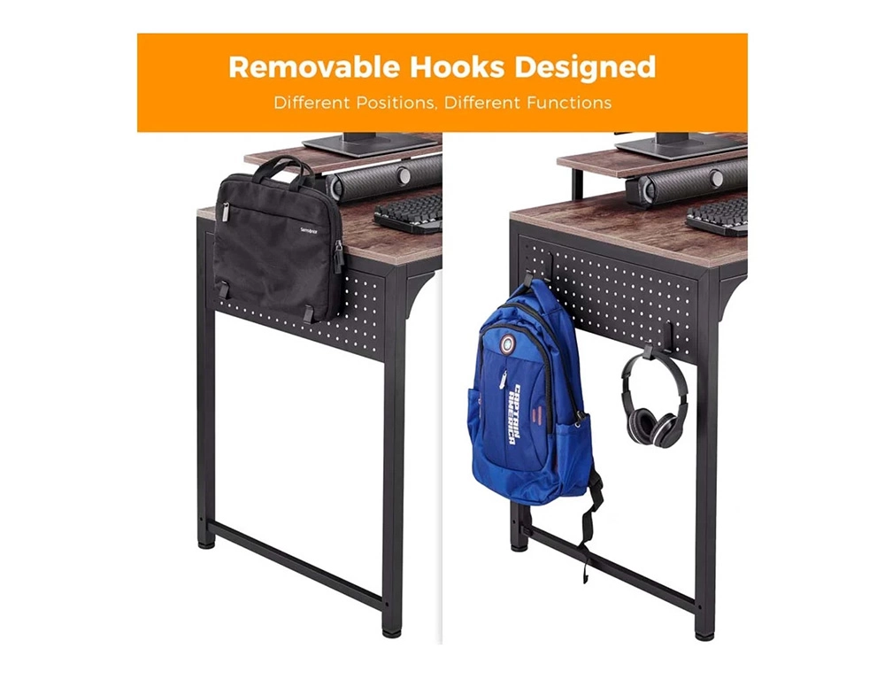 Το γραφείο της εταιρείας Eureka Ergonomic διαθέτει μεταλλικά πόδια. Εξωτερικά διαθέτει επένδυση μελαμίνης, η οποία προσφέρει ανθεκτικότητα στα γρατζουνίσματα, στην τριβή και στα διαβρωτικά. Είναι κατάλληλο για τοποθέτηση σε κάθε χώρο του σπιτιού και διαθέτει χώρο για τοποθέτηση πύργου υπολογιστή, ράφι και 2 γάντζους για τη στήριξη αντικειμένων.