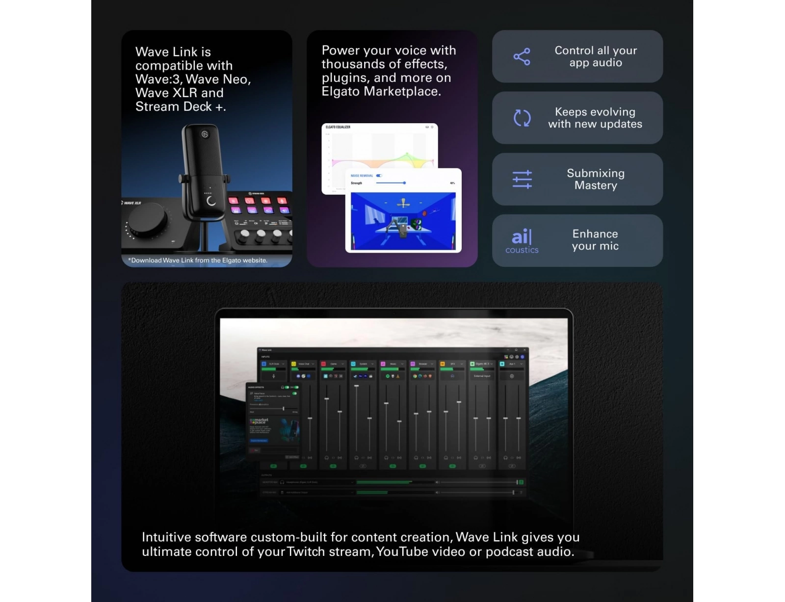 Κράτα σε έλεγχο όλες τις πηγές ήχου ενώ με το πανίσχυρο λογισμικό Wave Link μπορείς να κάνεις άμεση μίξη.