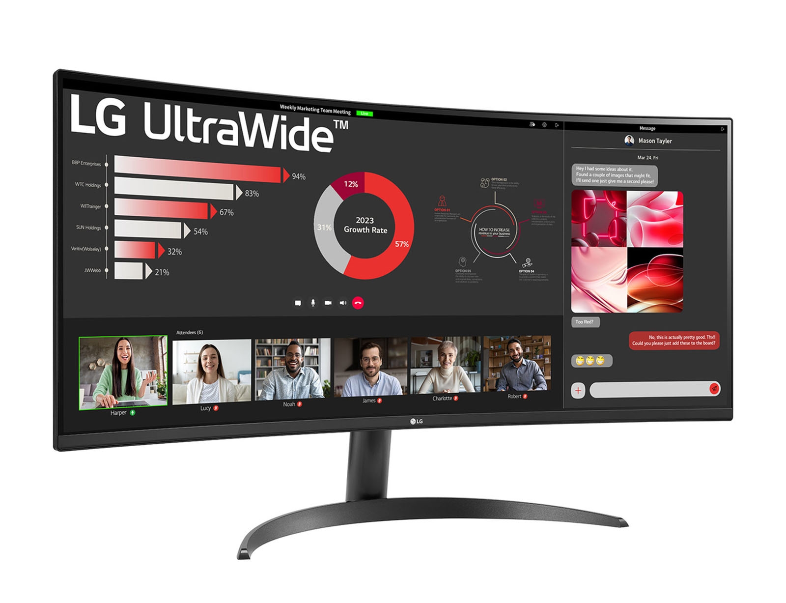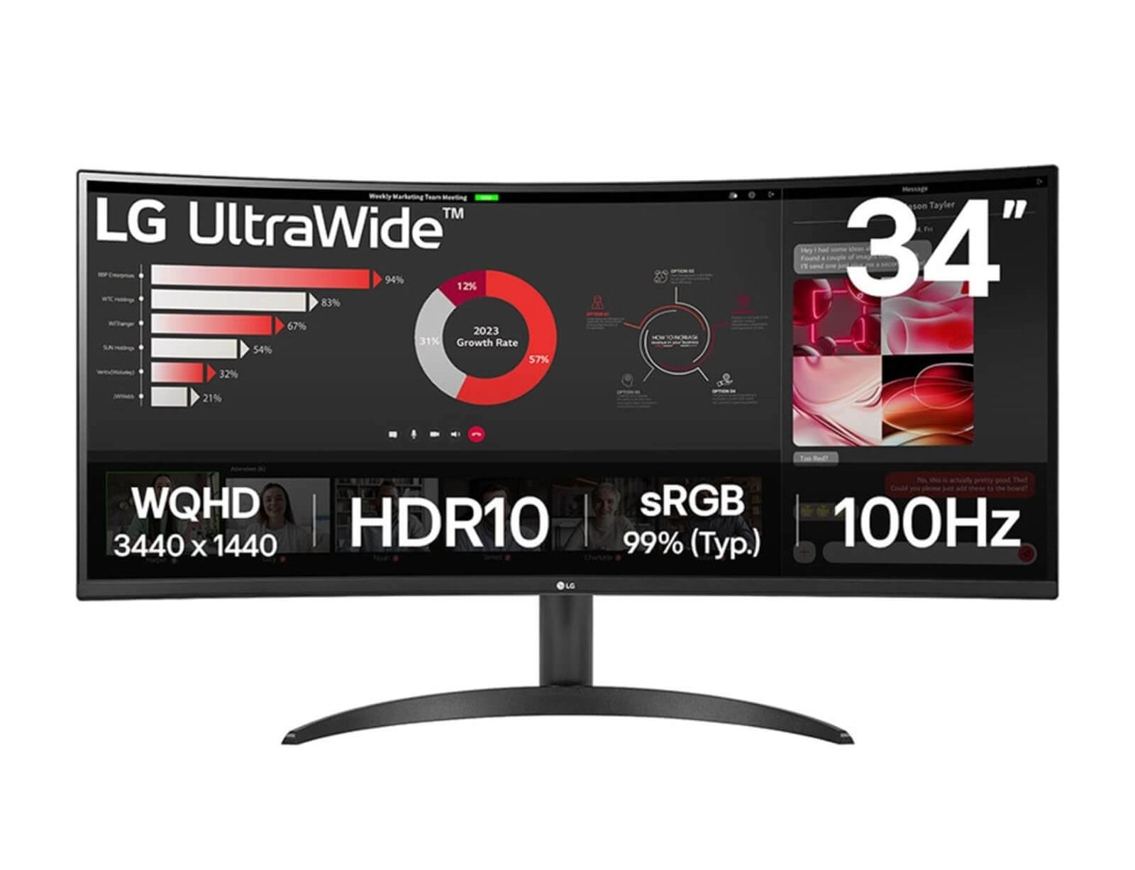 Monitor LG 34WR50QK-B - 34"- Curved - UltraWide - WQHD - VA - HDR10 - 100Hz - HDMI/DP
