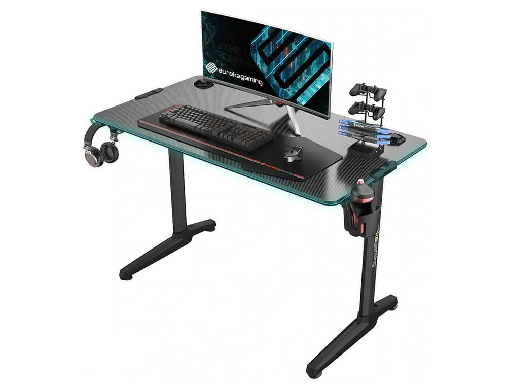 Gaming Γραφείο Eureka Ergonomic - Μεταλλικά Πόδια - RGB - Black